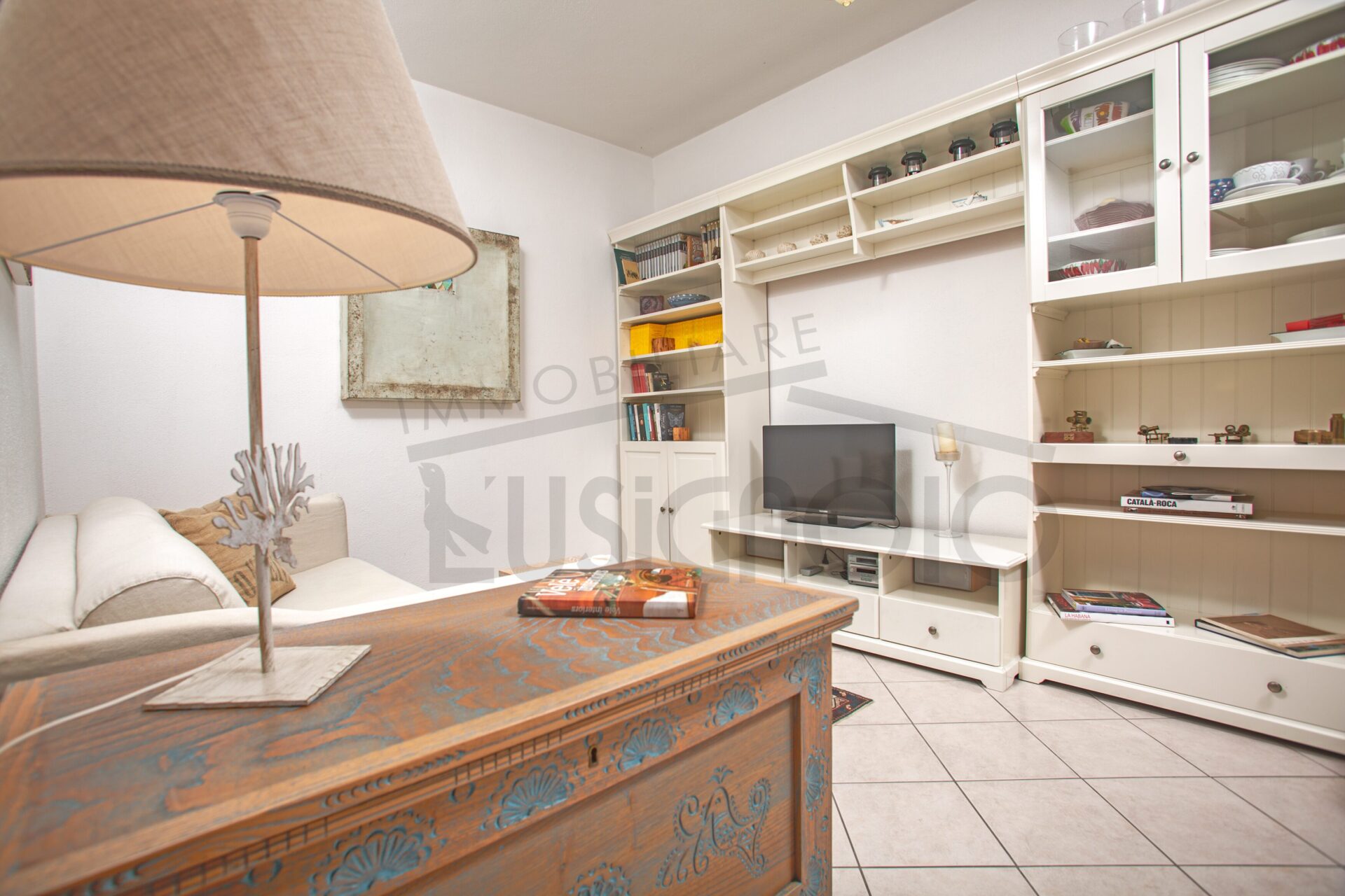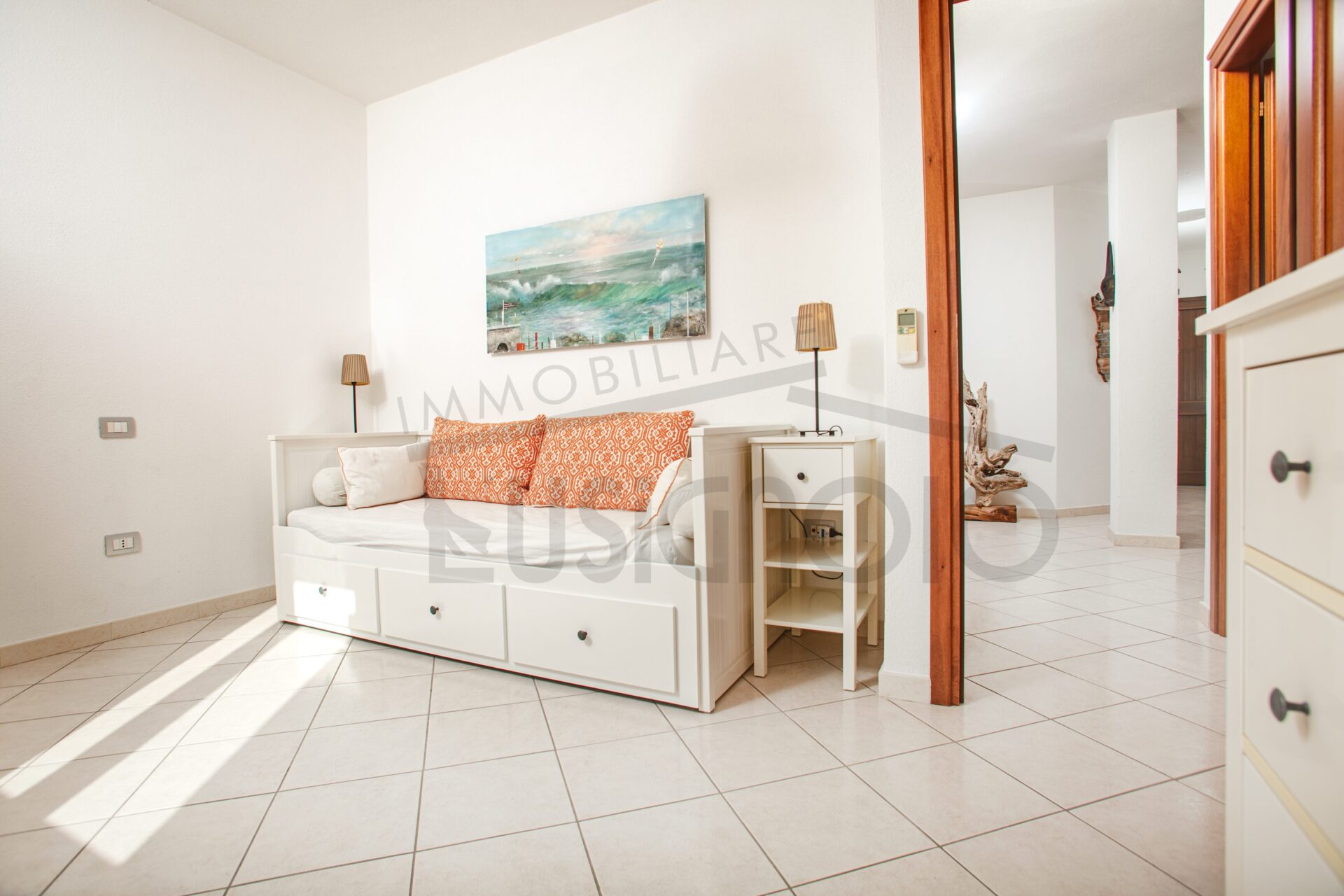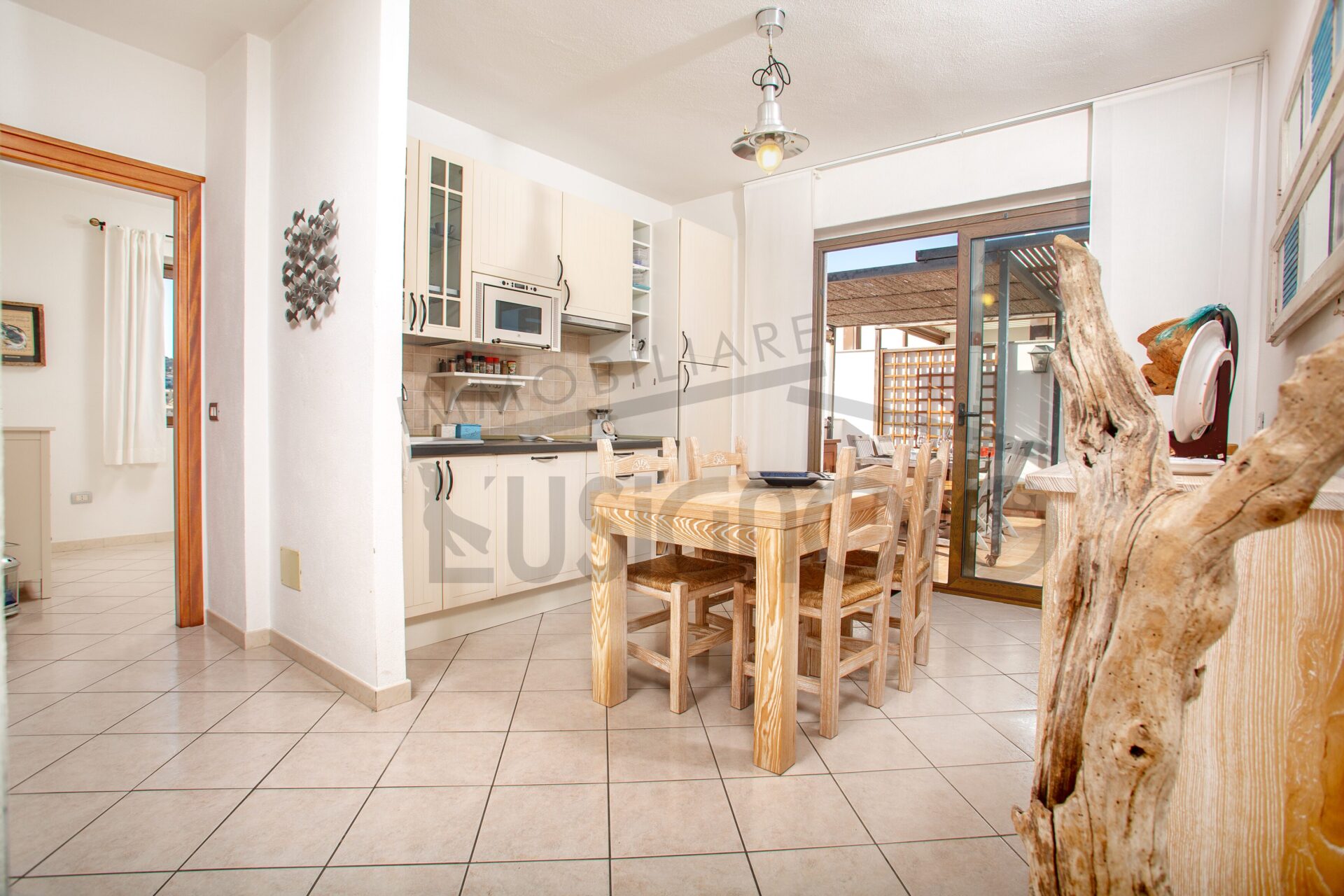 Completano la proprietà un posto auto privato all’interno dell’area condominiale. La doppia esposizione est-ovest che assicura luminosità durante tutto l’arco della giornata. L’appartamento viene venduto completamente arredato con mobili di pregio in autentico stile sardo. Dispone di cucina accessoriata e impianto di climatizzazione in tutte le stanze.