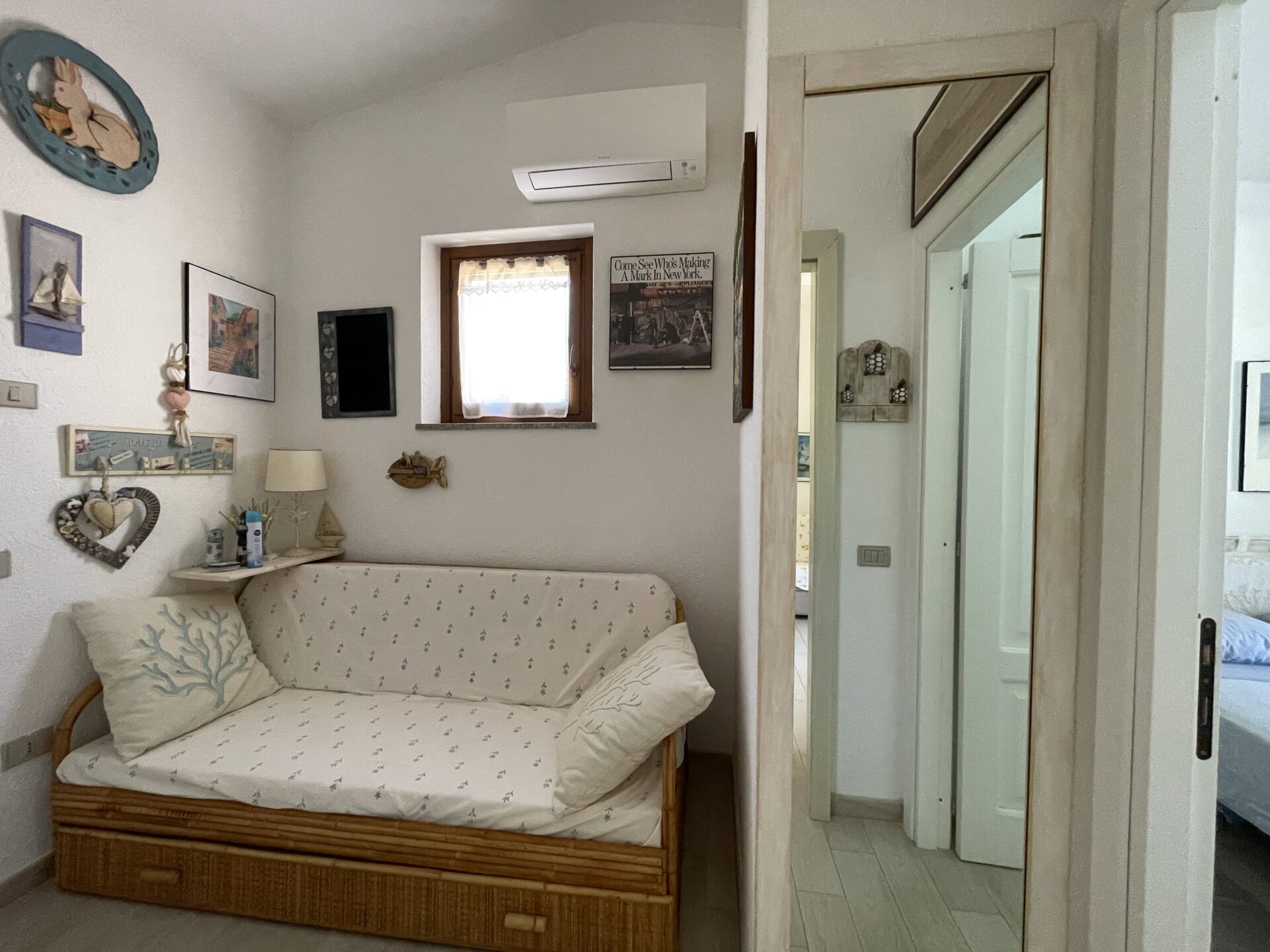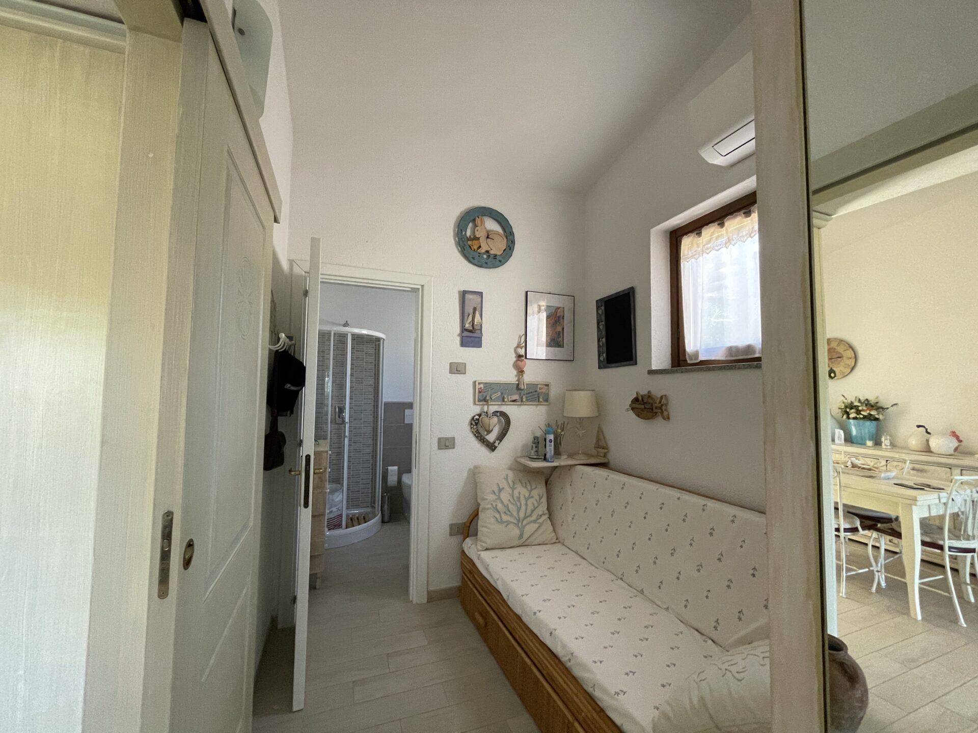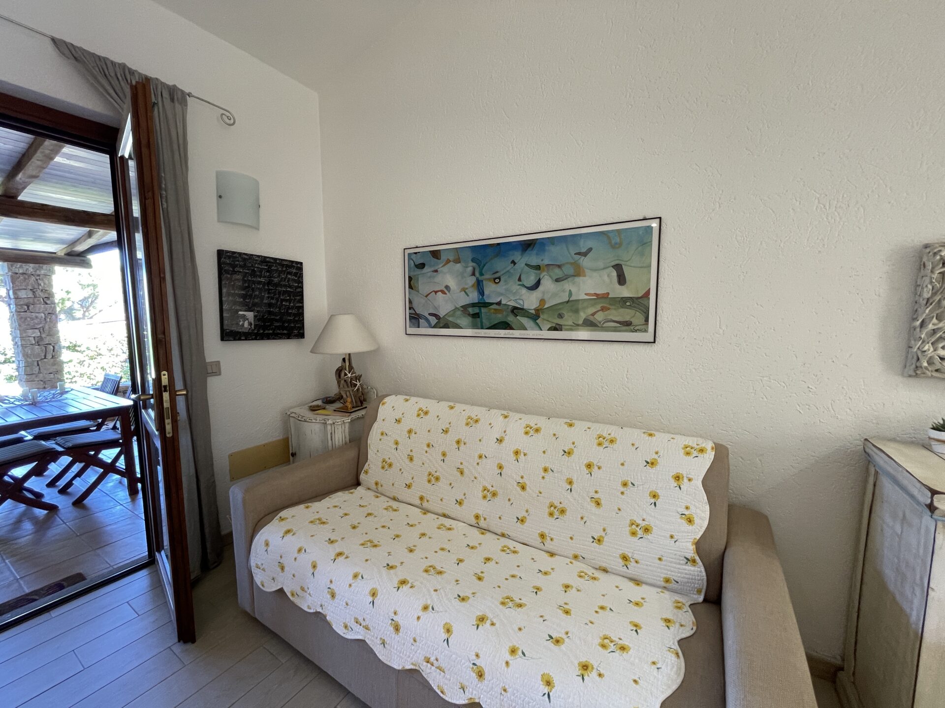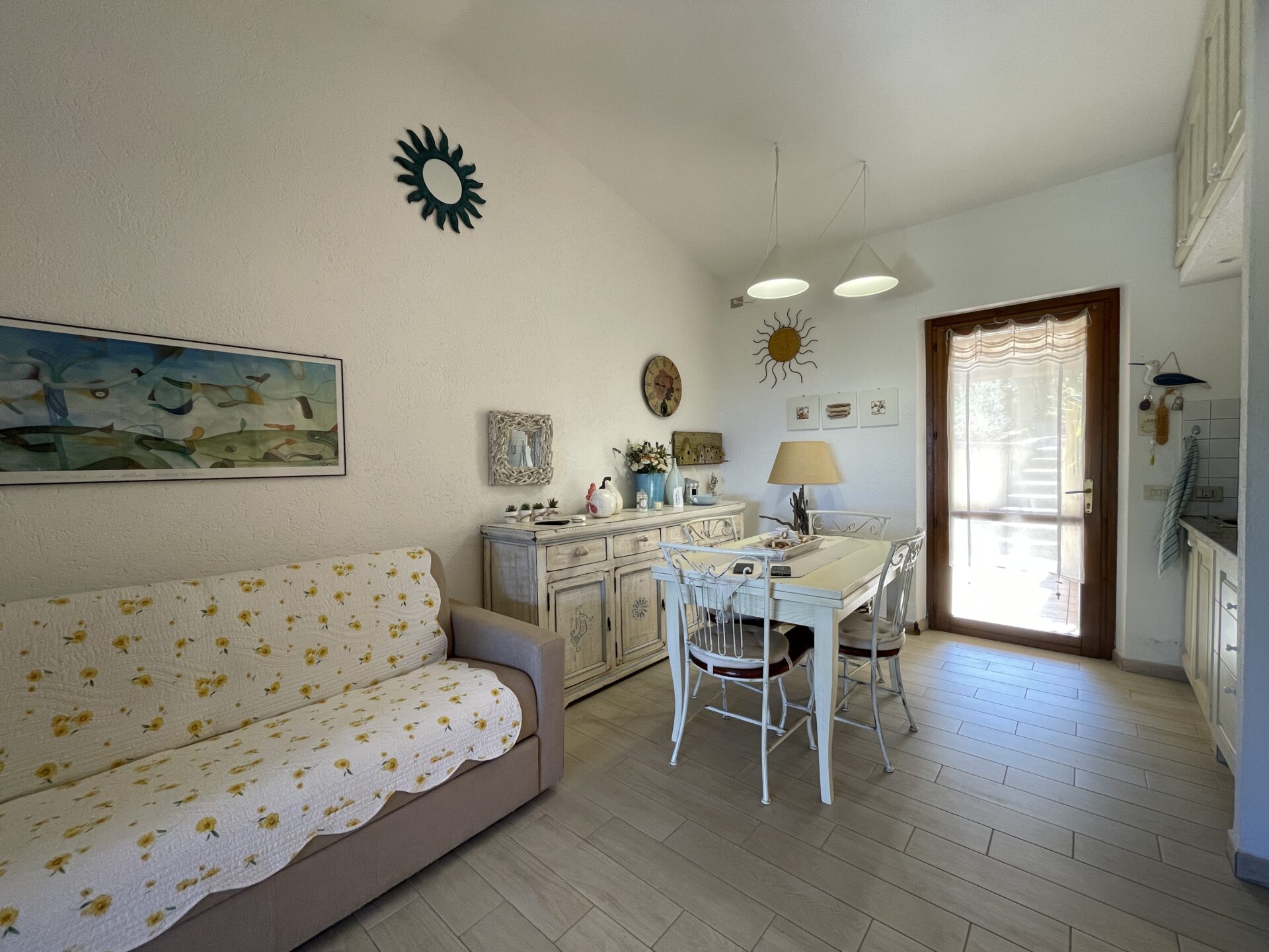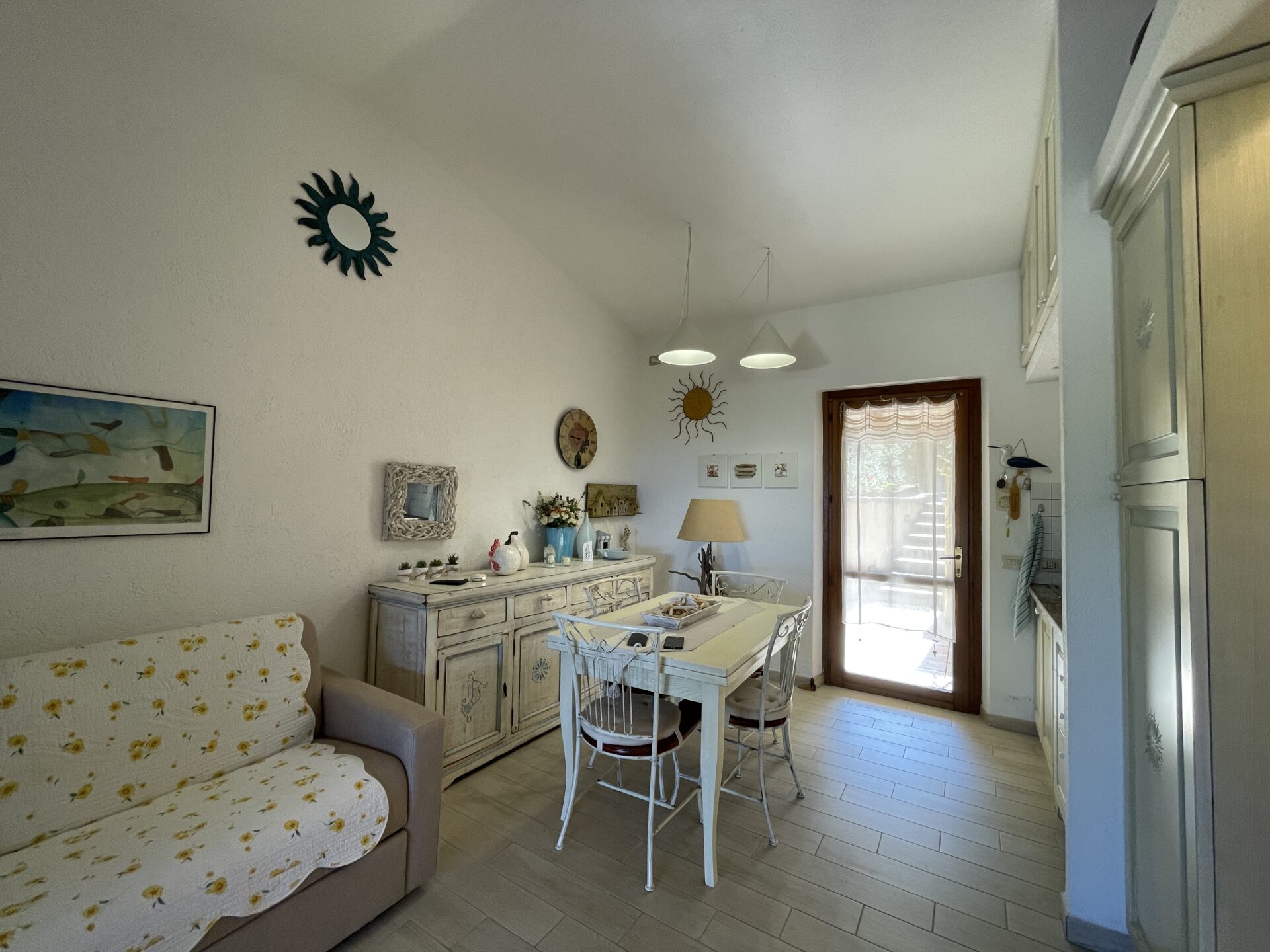 Dotata di posto auto privato, viene venduta arredata con mobili di pregio in autentico stile sardo ed è equipaggiata con impianto di climatizzazione e stufa a legna, ideale per garantire comfort in ogni stagione.